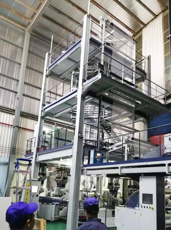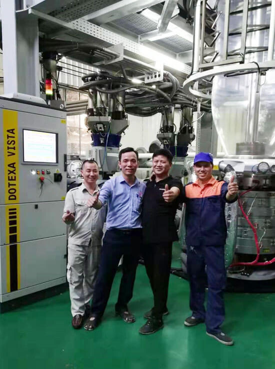 一家越南大型綜合性吹膜制袋包裝企業(yè),有30多年歷史,之前從我們PLASTAR公司購買過2臺高速吹膜機(jī)。第二次合作在2019年7月,該企業(yè)采購了這臺ABCDE五層共擠POD非阻隔1600mm吹膜機(jī)。